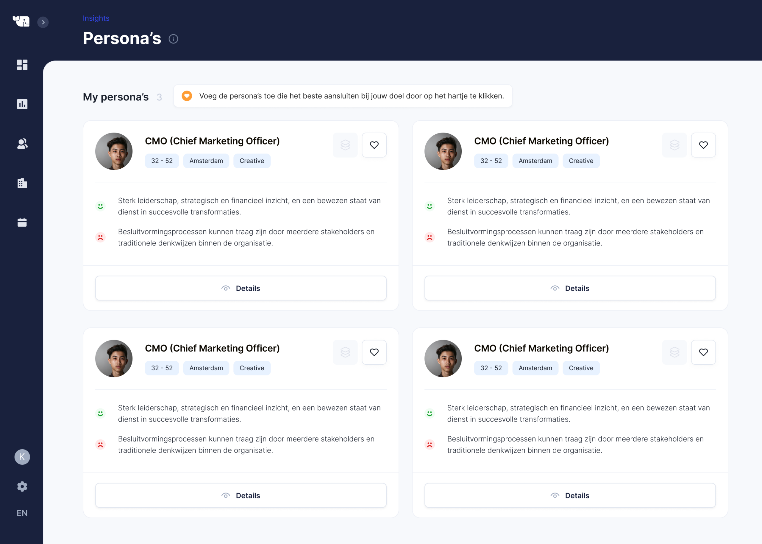 Throughout the process, I worked closely with a multidisciplinary team including marketers, the founder (also a marketing strategist), sales specialists and developers. Together, we aligned product logic, business goals and technical feasibility to ensure the platform supports real-world marketing workflows.